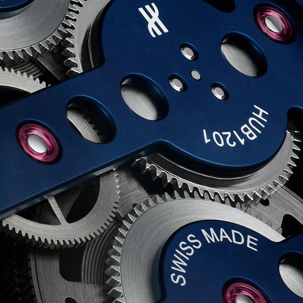 Caliber: HUB1201, in-house manual-winding skeletonized movement