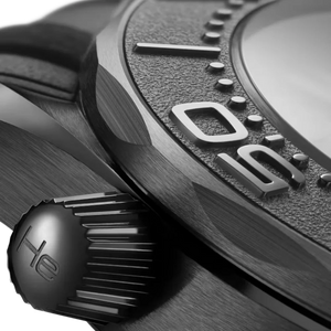 Dial: Matte black ceramic with laser-engraved wave motif, blackened hands and indexes with black Super-LumiNova