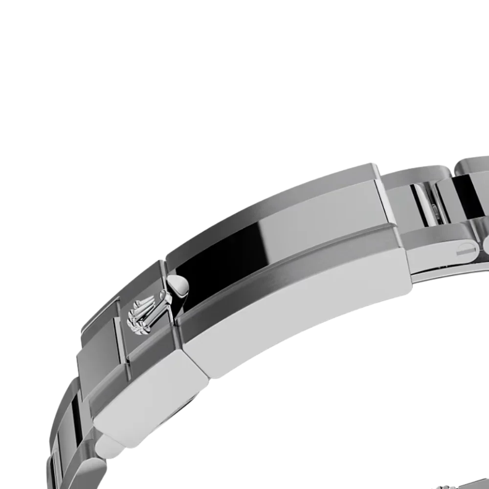 Bracelet: Oyster bracelet with flat three-piece links, folding safety clasp, and 5 mm comfort extension