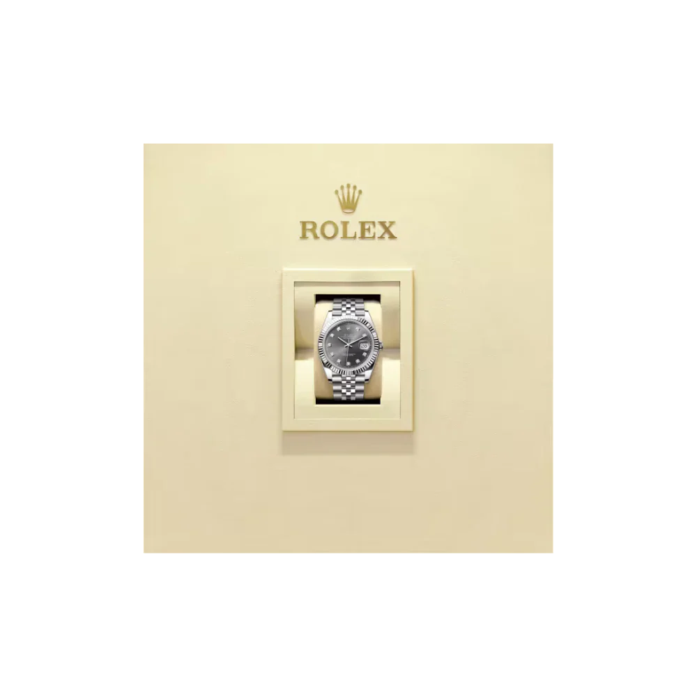 The RL Datejust 41 Ref. 126334-0006 is a harmonious blend of timeless tradition and modern refinement. Its 41 mm White Rolesor case — combining Oystersteel and 18 ct white gold — houses a slate sunray dial adorned with 10 brilliant-cut diamond hour markers, perfectly balanced with the signature fluted white-gold bezel. The Jubilee bracelet offers exceptional comfort, elegance, and versatility, making it ideal for both daily wear and formal occasions.