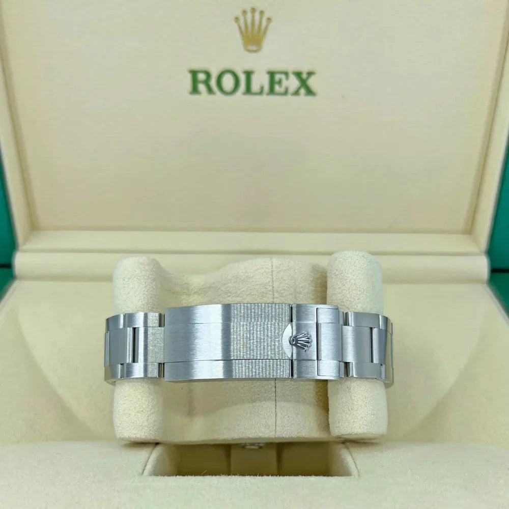 The Oyster bracelet with Oysterlock Glidelock clasp and Fliplock extension allows tool-free adjustment — even over wetsuits — combining practicality with comfort for daily wear.