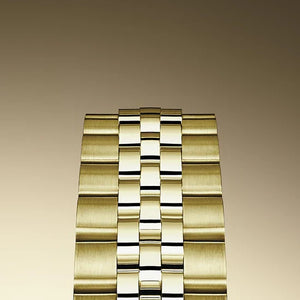 Powered by the RL Calibre 2236, a next-generation self-winding mechanical movement with Syloxi hairspring, this Lady-Datejust ensures top-tier precision, shock resistance, and a 55-hour power reserve. The President bracelet, crafted in solid 18k yellow gold with semi-circular three-piece links, offers exceptional comfort and prestige, secured by the concealed Crownclasp.