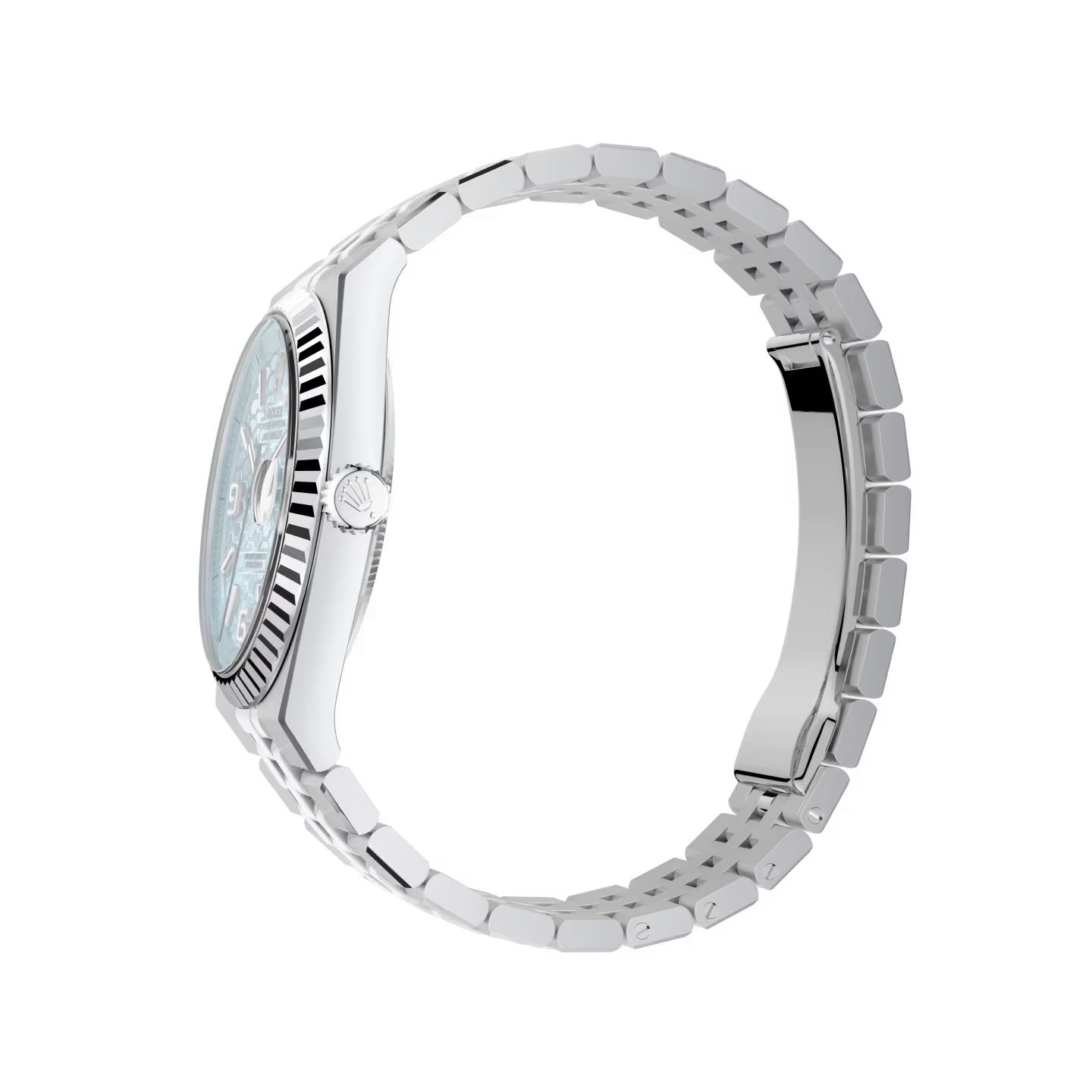 - Bracelet Type: President bracelet in platinum (semi-circular three-piece links)