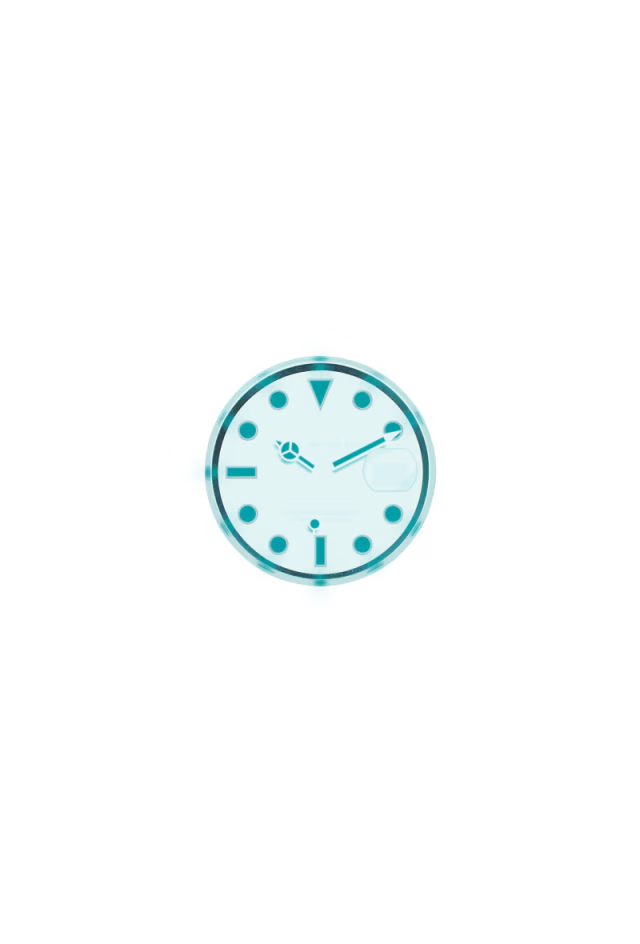 • Dial: Rhodium grey with luminous hour markers, aqua blue seconds hand